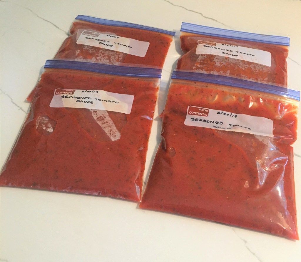 Roast 45 minutes or until vegetables are soft. Run through a food mill, bag and freeze. Makes 2 quarts. Use for pasta sauce, over fish or chicken, or use as a base for chili or minestrone.