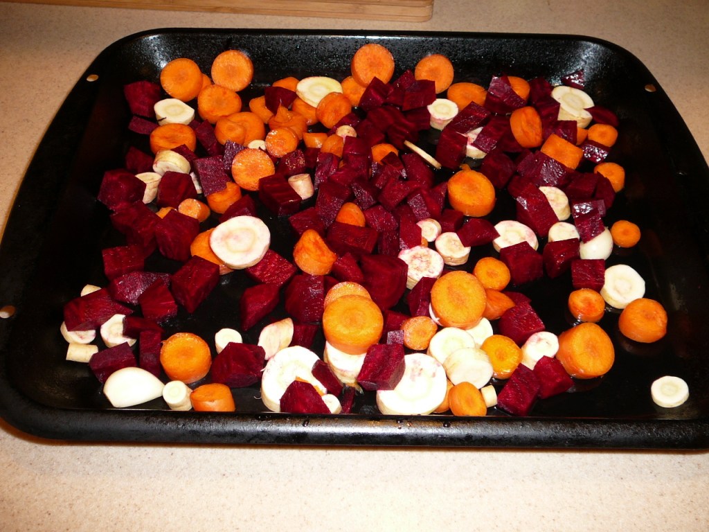6-8 cups root vegetables (any combination of carrot, beet, parsnip, rutabaga, turnip, salsify, celery root, sweet potato, butternut squash) cut into ½ inch pieces