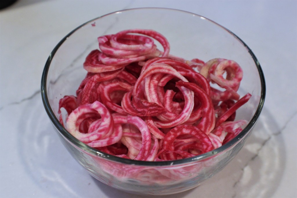 Planting every two or three weeks will keep you in carrots and beets all season. My favorite beet is Chioggia, an Italian beet that is creamy white or pink with dark rings. The best feature is that these beets will stay tender all season, not becoming woody as some beets do when left in the ground.