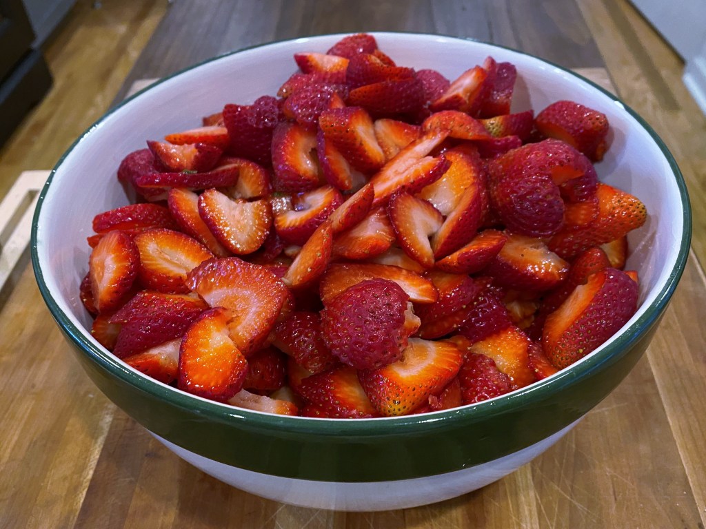 Strawberry shortcake to some means strawberries over angel food cake. But true shortcake is a type of flaky sweetened biscuit. They are split hot from the oven, piled with fresh sliced room-temperature strawberries and topped with icy whipped cream. Nirvana!