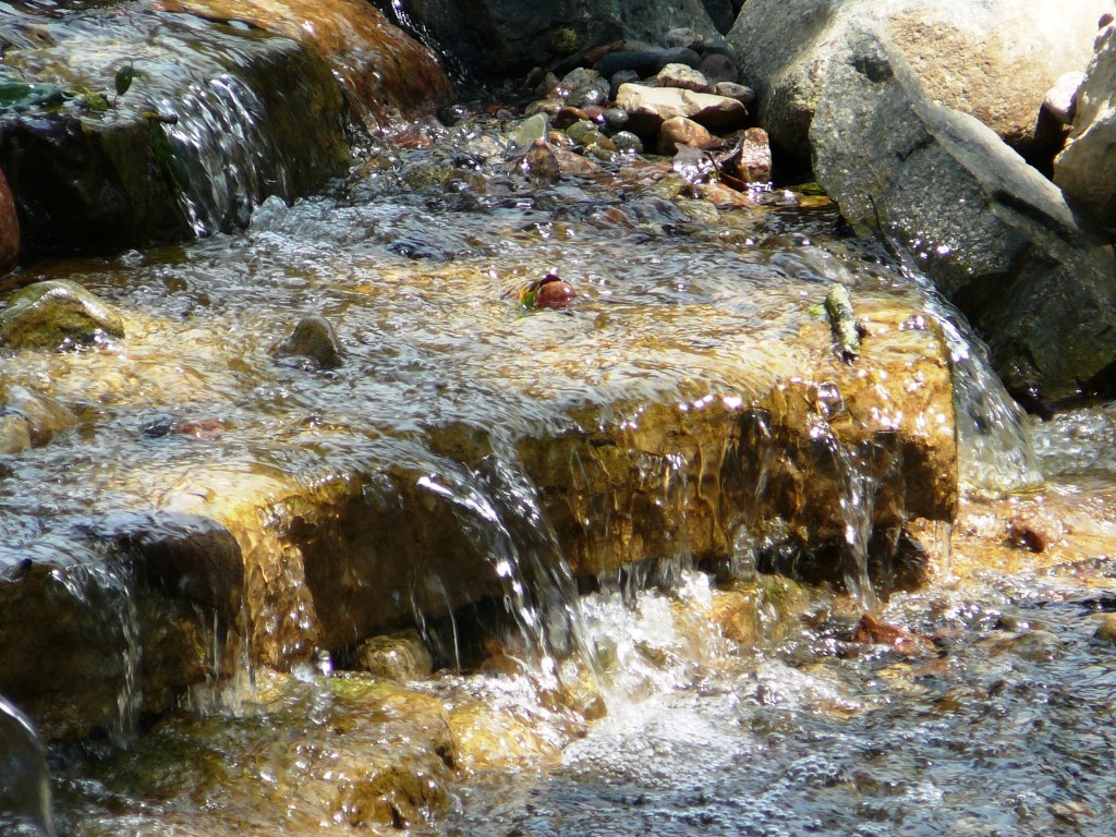Streams add coolness and motion to the garden, and even if adding water would be difficult, a dry stream bed gives the illusion of movement. A naturally occurring stream is a treasure and can be taken advantage of by adding stones of differing sizes and shapes to offer pleasing textures and to vary the sounds the water makes as tumbling over them.