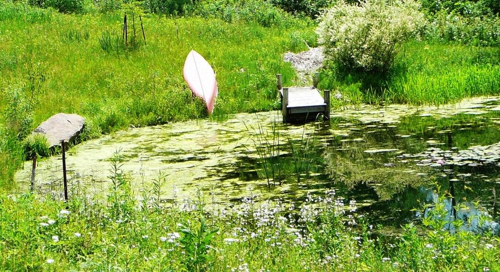 Design the largest pool that you can possibly handle since larger a pond will be easier to keep environmentally balanced than a smaller pool. The minimum pond size for ease of maintenance is about forty to fifty square feet (about 400-800 gallons). If you want to keep fish in the pond, it needs to be at least 18″ deep to avoid the temperature extremes of a shallow pool that can damage or kill plants and fish. Otherwise, it’s necessary to remove all plants and fish for the winter. Avoid the temptation to site your pond in a low area which may be a collection spot for debris and pollutants in runoff. Although some ponds make use of aerators and filters to keep them absolutely clear, skillfully combining plants and fauna can achieve a natural balance that needs no assistance
