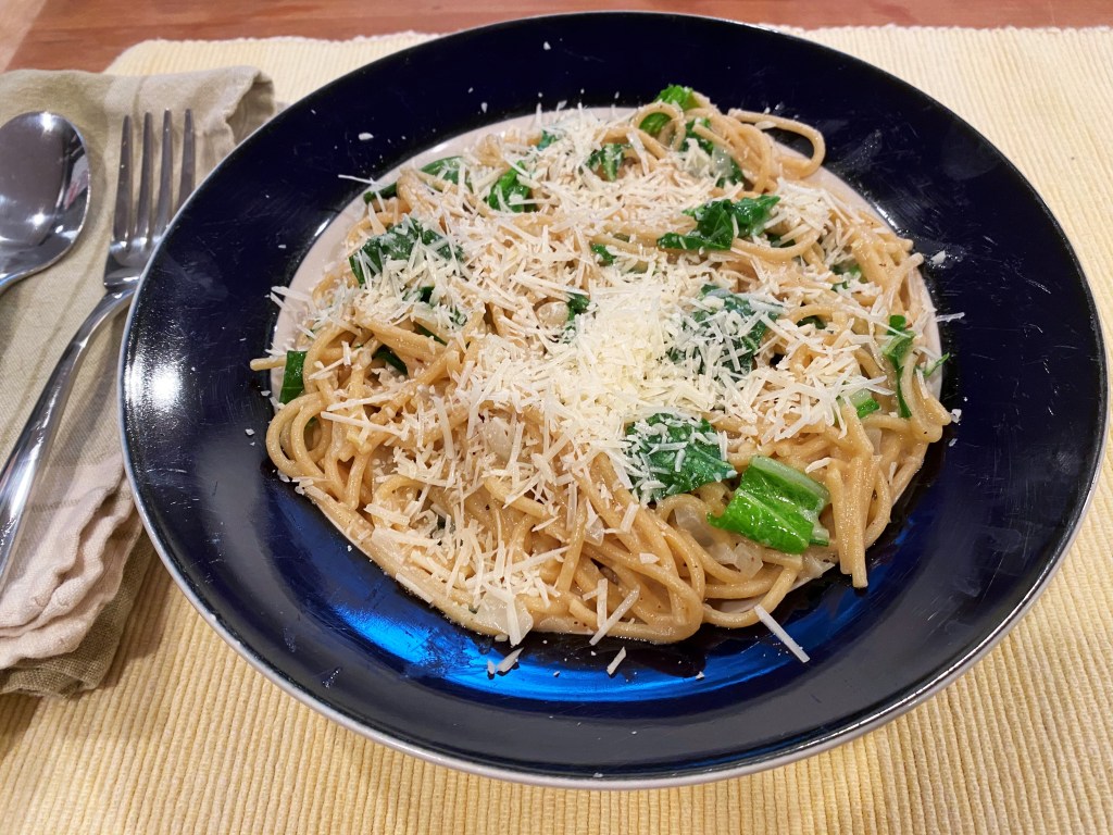 Most importantly, I need to remember to keep things as simple as possible. A chopped tomato mixed with olive oil, minced fresh garlic, salt and fresh basil is a perfect sauce to toss with hot pasta. Or simply sauteed greens and onions over pasta. No time, not much prep and absolutely fresh and delicious.