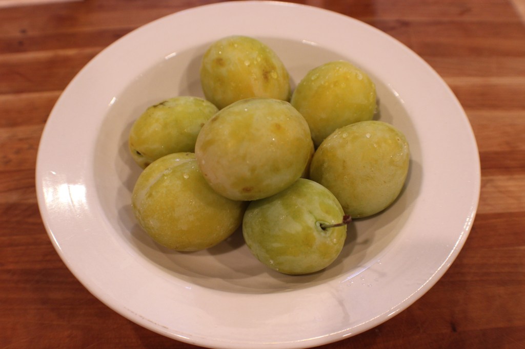 Prepare fruit – you can peel peaches and plums if desired. Slice. If the fruit is particularly juicy, you can toss with 2 T. cornstarch to thicken the juices somewhat. If the fruit is tart, add up to half a cup of sugar.