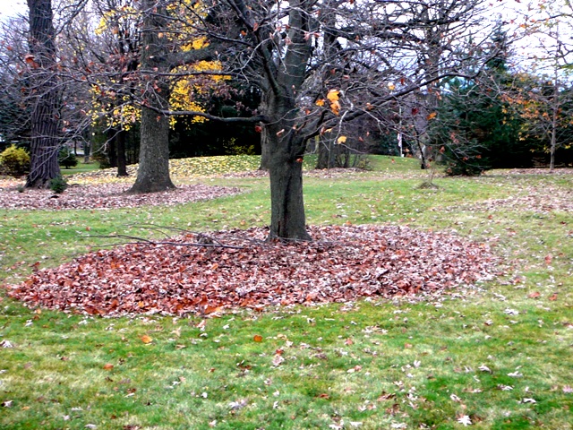 If you can’t stand the look of the untouched leaf cover, by all means, rake them out of the beds, shred with the mower and then blow them back into the beds. You’ll be on your way to a lovely layer of mulch. Think of it as free fertilizer. Let nature do the breakdown for you and give you organics for free. No need to buy all that bagged mulch next spring.