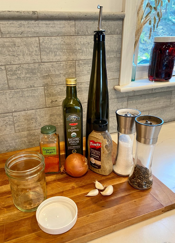 I find the easiest way to make and keep dressings is with a hand blender and a mason jar. If you like a chunky dressing, just put the ingredients in a jar and shake. If you like it smooth, blend it. Purchase plastic or save metal lids for mason jars and you’ll never be without a salad dressing jar.