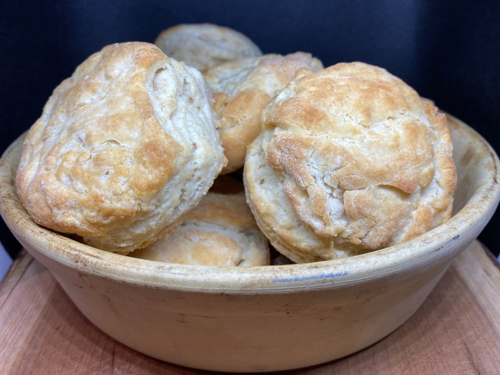 What a sublime treat – warm biscuits slathered with butter and homemade blackberry jam. Both of my grandmothers made biscuits almost every morning. Happily, I was astute enough to ask Nano how to make them. Of course she didn’t measure anything and was quite perplexed when I asked her to write down the recipe for me. But she did and I’ve treasured it ever since.