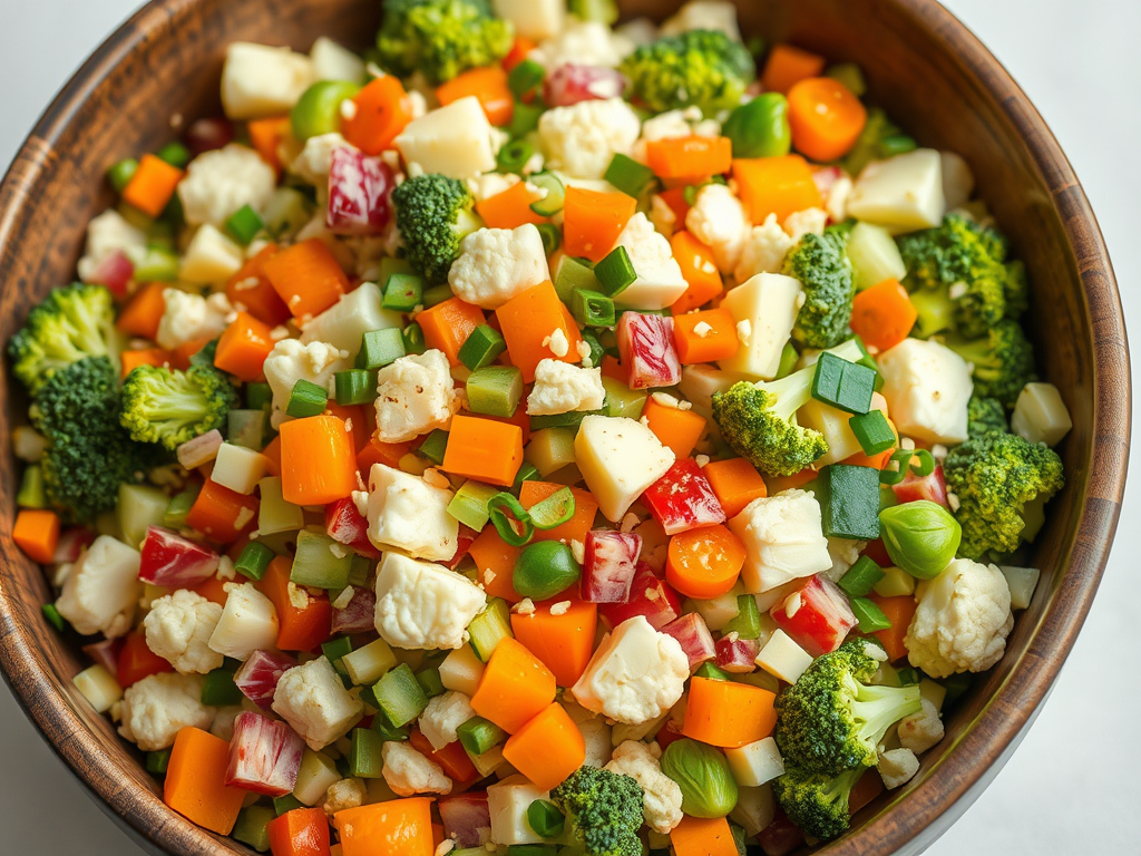 –Chopped salad – make a base of finely chopped vegetables – broccoli, cauliflower, brussels sprouts, sweet peppers, carrot – any vegetables that will hold up for a few days. Don’t dress until ready to eat. Add ephemeral vegetables like cucumbers and tomatoes at the last minute to keep them fresh.