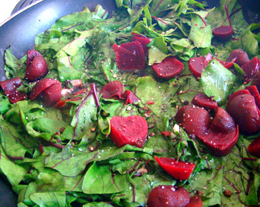 Sautéing roasted beets (I promise I didn’t enhance the color!)